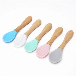 Lyžička s mäkkou silikónovou hlavicou a elegantnou drevenou rúčkou 🥄 je navrhnutá tak, aby sa dobre držala v malých rúčkach a zároveň jemne kŕmila citlivé detské ďasná.